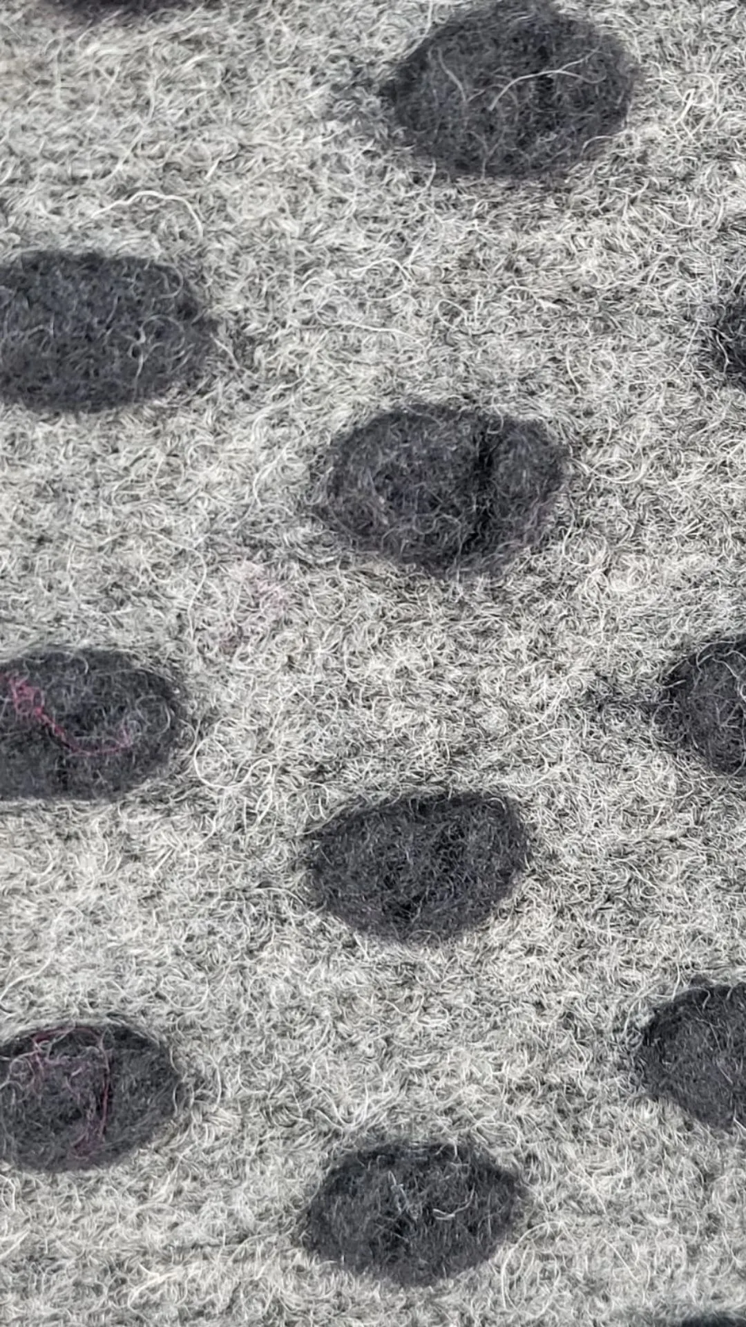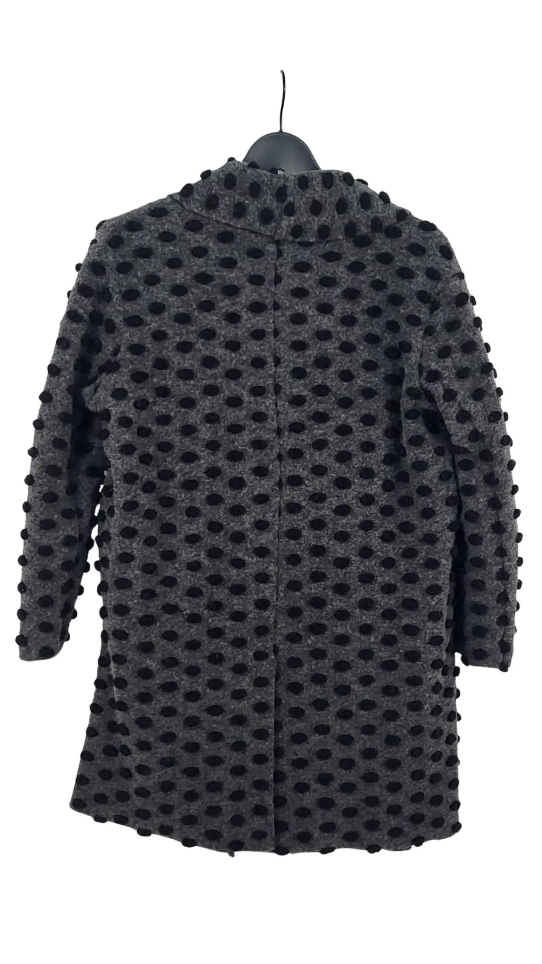 Tejido Especial: La base gris jaspeada tiene el aspecto de la lana cocida, aportando calidez y estructura. Los lunares negros no son estampados, sino que tienen volumen y textura (tipo felpa), invitando al tacto.