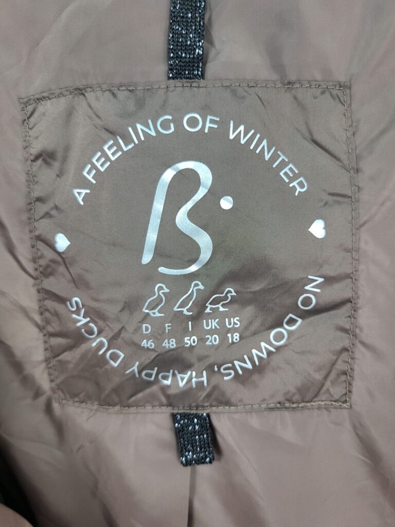 Happy Ducks (Sin Plumas): Este abrigo utiliza un relleno técnico de alta calidad que imita las propiedades térmicas del plumón, pero es 100% sintético y libre de crueldad animal, tal como garantiza su etiqueta interior.