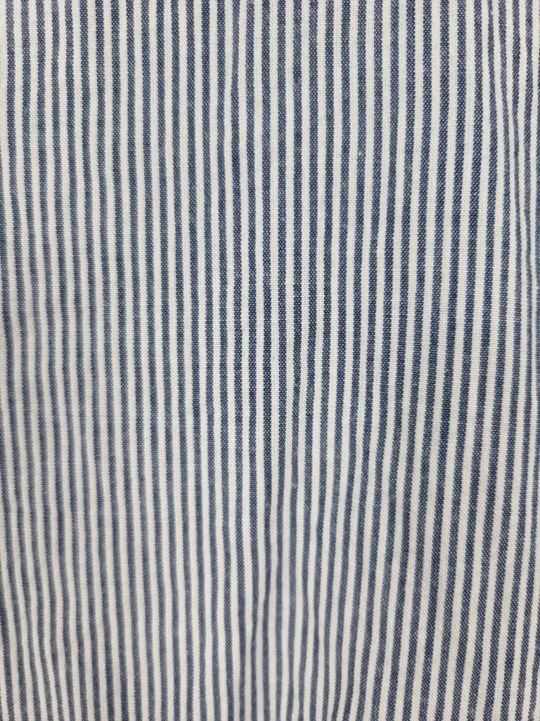 Estampado Sastre: Las finas rayas verticales en azul y blanco son el patrón definitivo de la elegancia profesional, ayudando además a estilizar la figura visualmente.