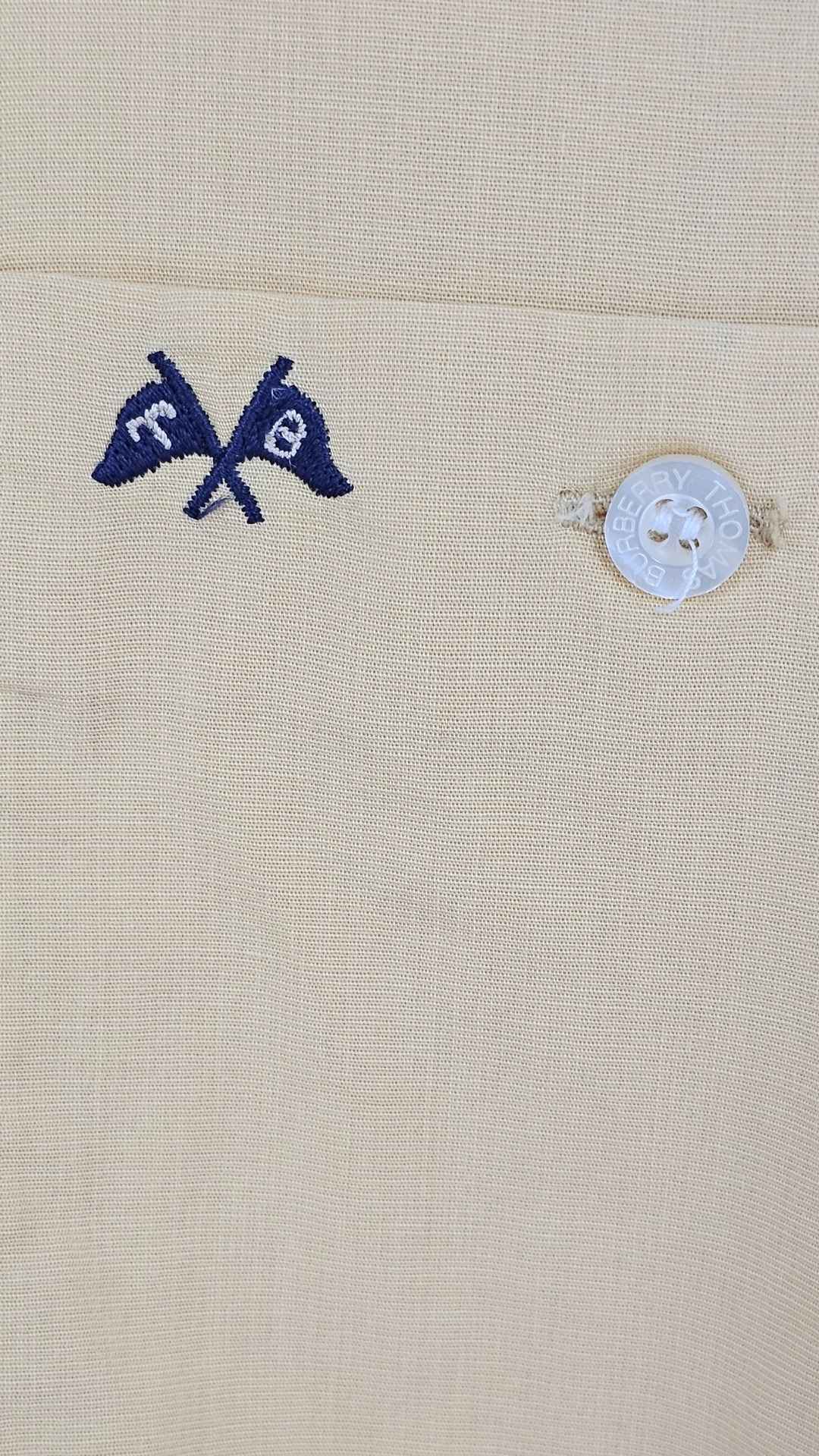 Detalles que Cuentan Historia A diferencia de las camisas Burberry habituales, esta pieza presenta el distintivo logotipo de las banderas cruzadas con las iniciales TB, bordado en azul marino en el bolsillo.