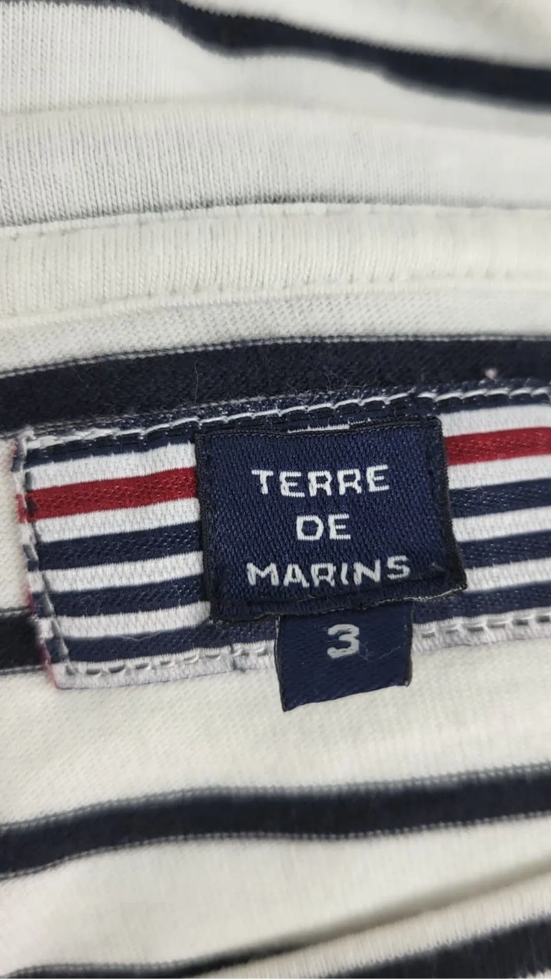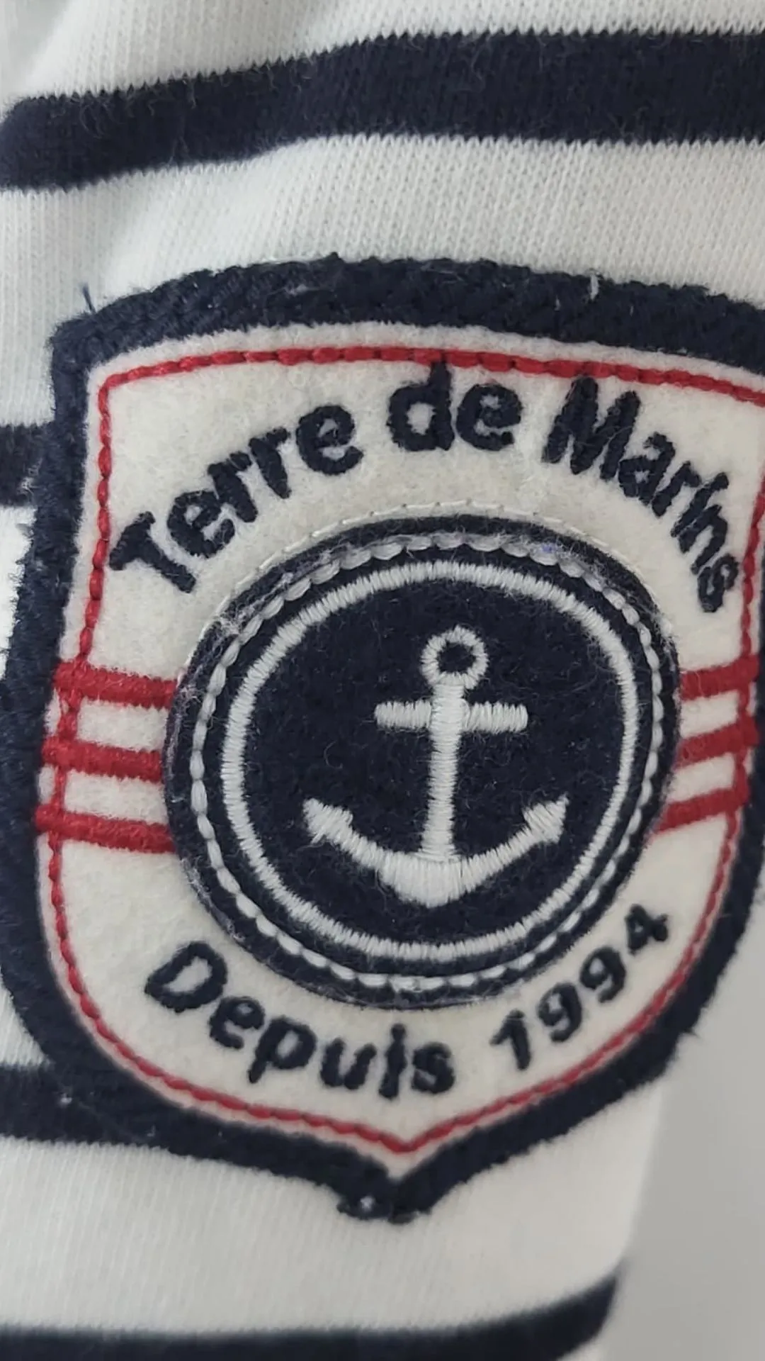 Bordados: Logo «Terre de Marins – Depuis 1994» y banderín náutico en el pecho.