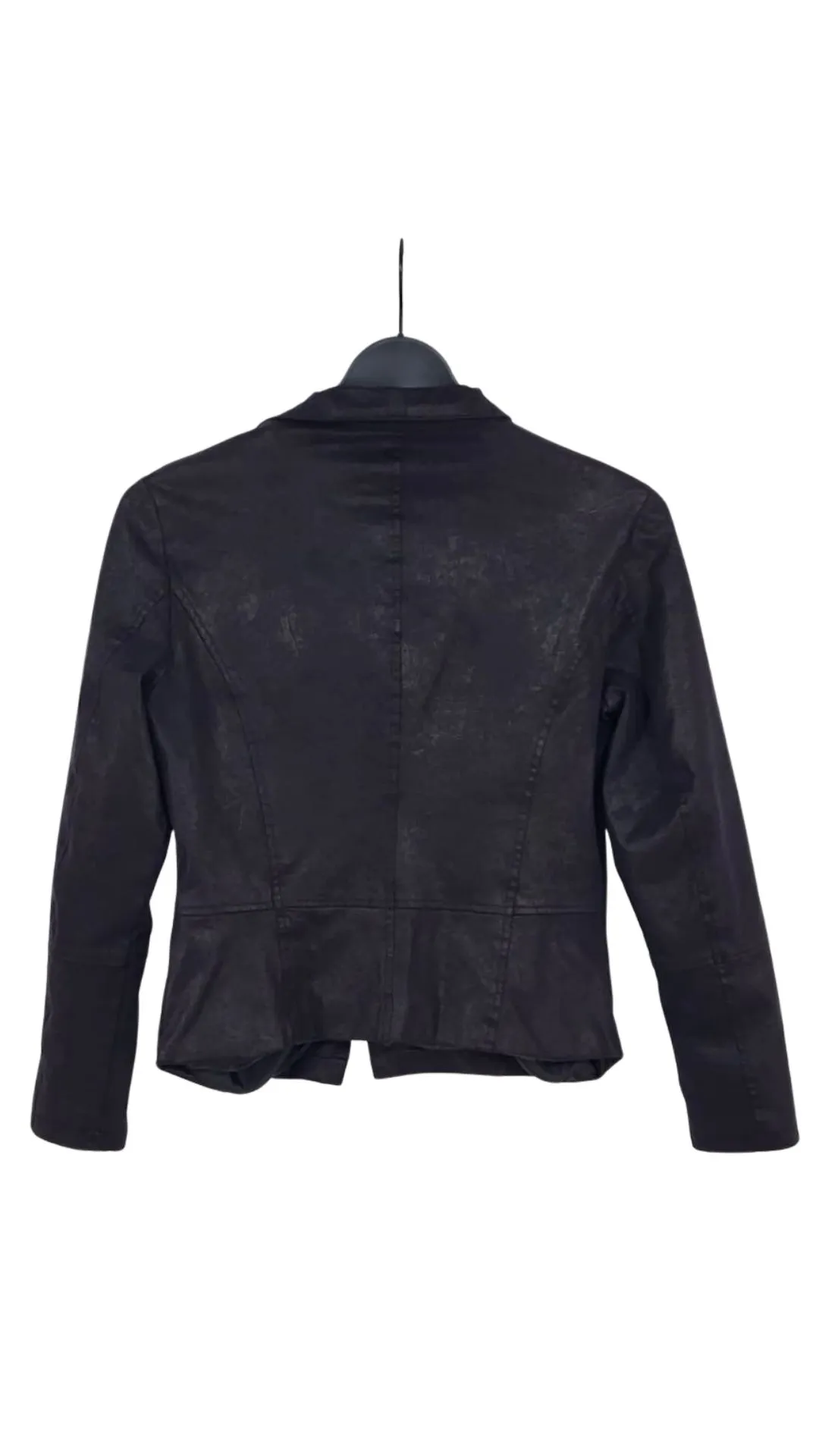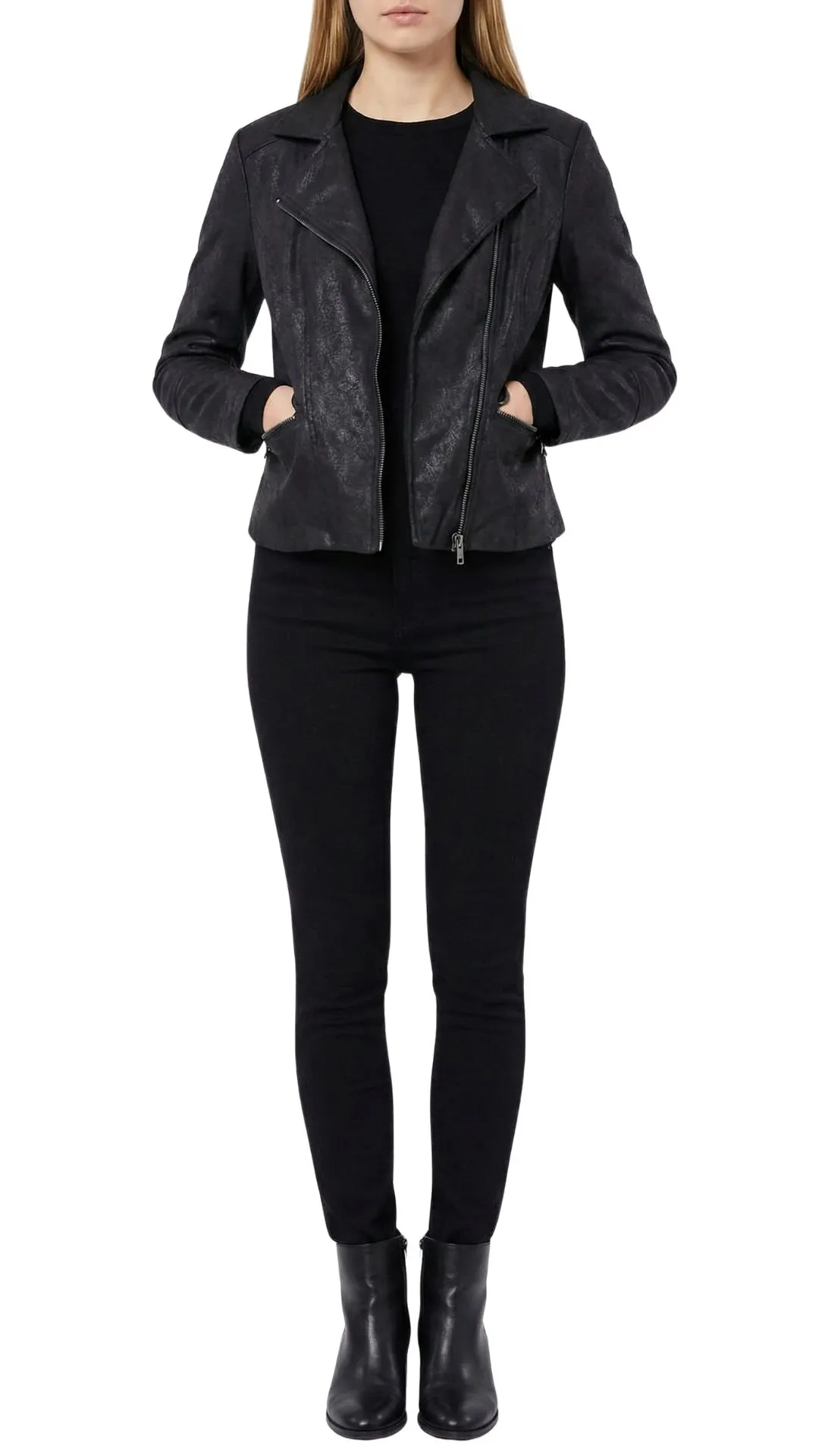 Acabado Único: A diferencia de las bikers básicas, este modelo presenta un tejido negro con una textura visual (efecto desgastado o craquelado sutil) que le aporta carácter y profundidad, evitando el brillo excesivo del plástico.