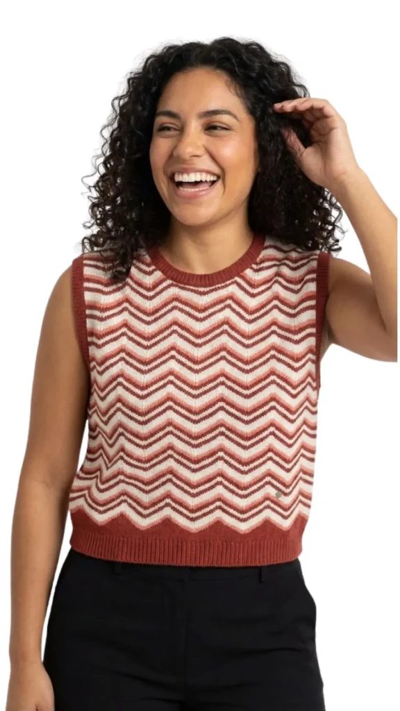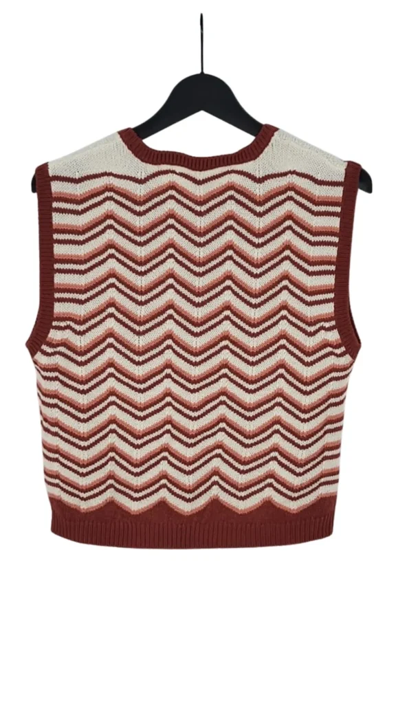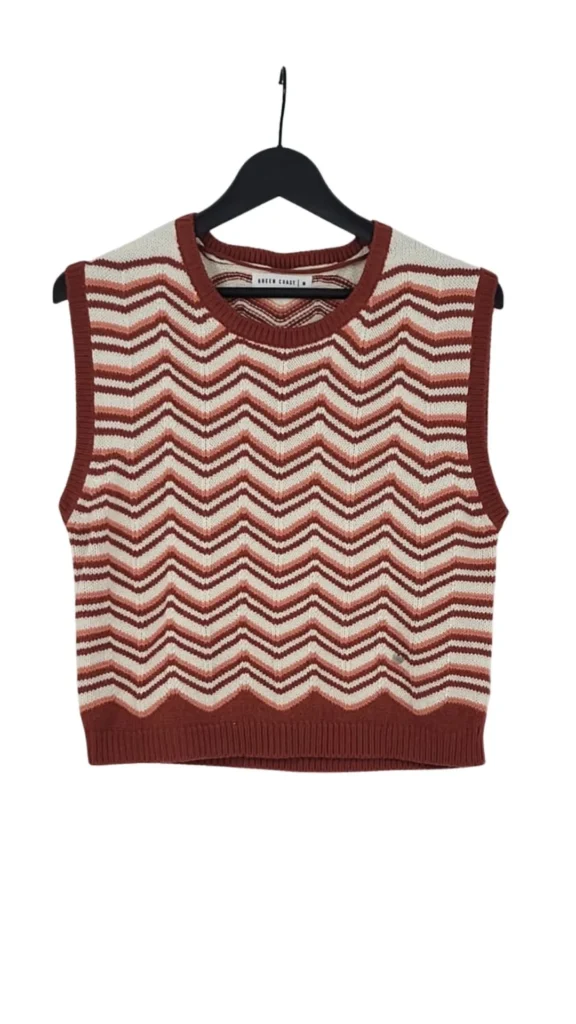 Súmate a la moda de los chalecos (vest trend) con este diseño de Green Coast. Una prenda versátil que aporta color y textura a cualquier conjunto básico, inspirada en la estética de los años 70.