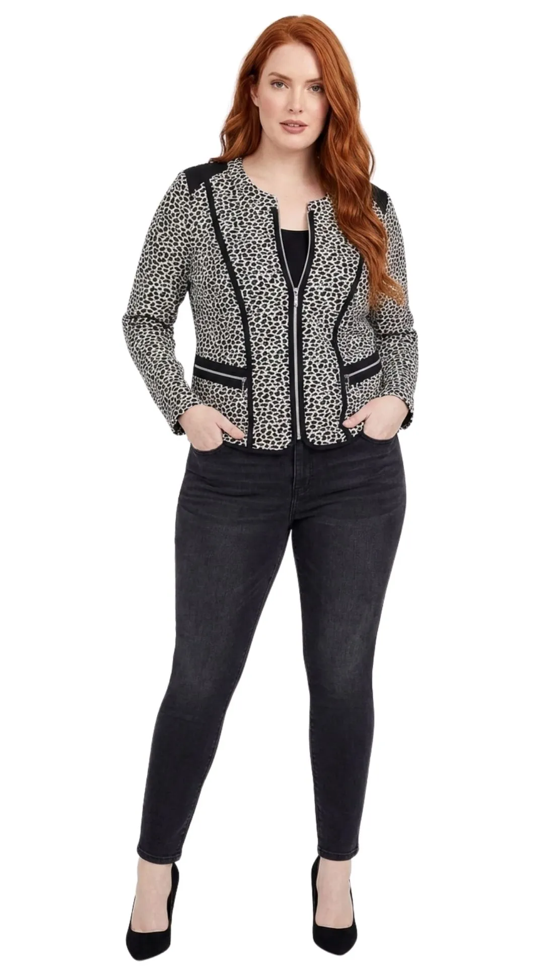 Dale un toque de carácter a tus looks de oficina o fin de semana con esta chaqueta de la línea Premium de Canda. Combina la tendencia del animal print con un diseño inteligente pensado para realzar la silueta.