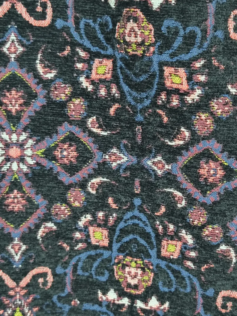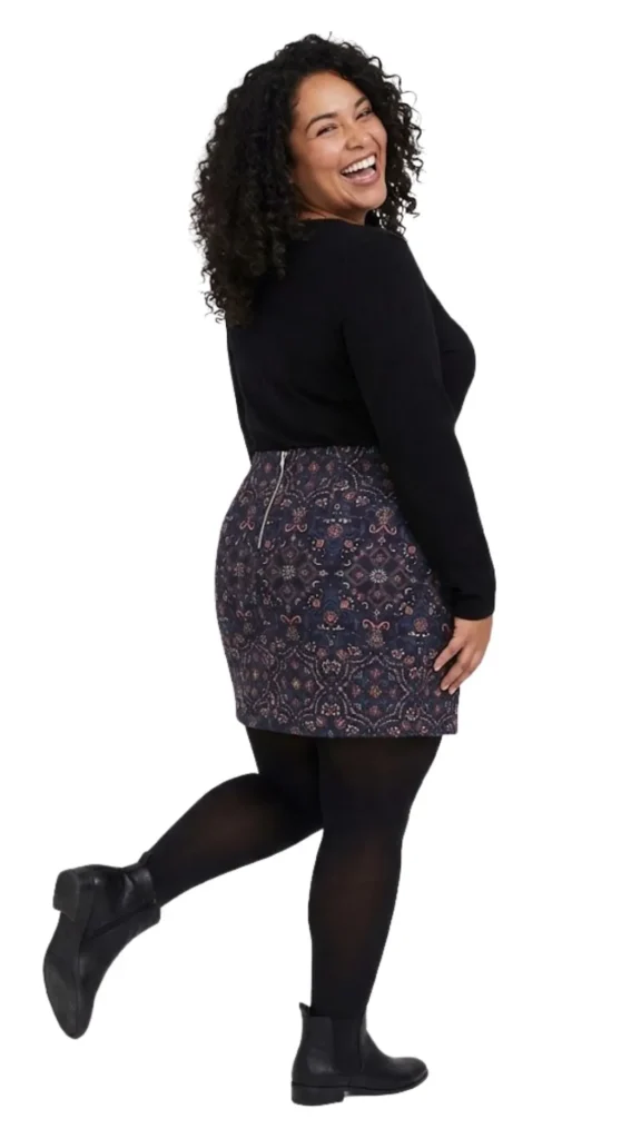 Tejido Tapiz: El material tipo jacquard tiene cuerpo y estructura, lo que evita que se pegue y mantiene la forma de la falda, además de ser más cálido que una tela fina.
