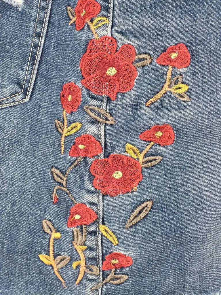 Dale un giro dulce y artesanal a tus básicos con esta falda de Miss Two Jeans. Los bordados florales aportan color y feminidad a la robustez del tejido vaquero, creando una prenda perfecta para festivales o tardes de verano.