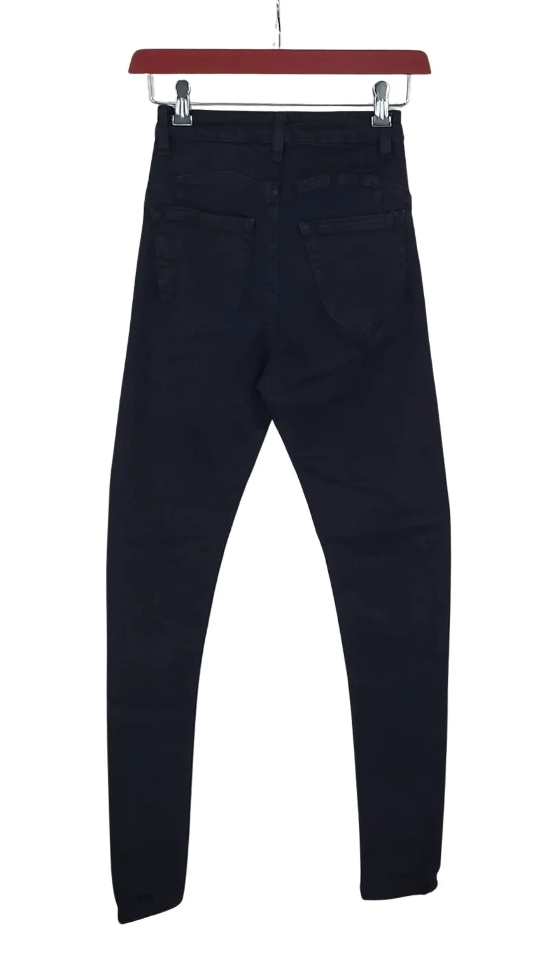 Estos vaqueros negros destacan por su diseño frontal, perfecto para llevar con tops cortos o por dentro del pantalón. Sin embargo, son una prenda especial debido a su tallaje extremadamente reducido.