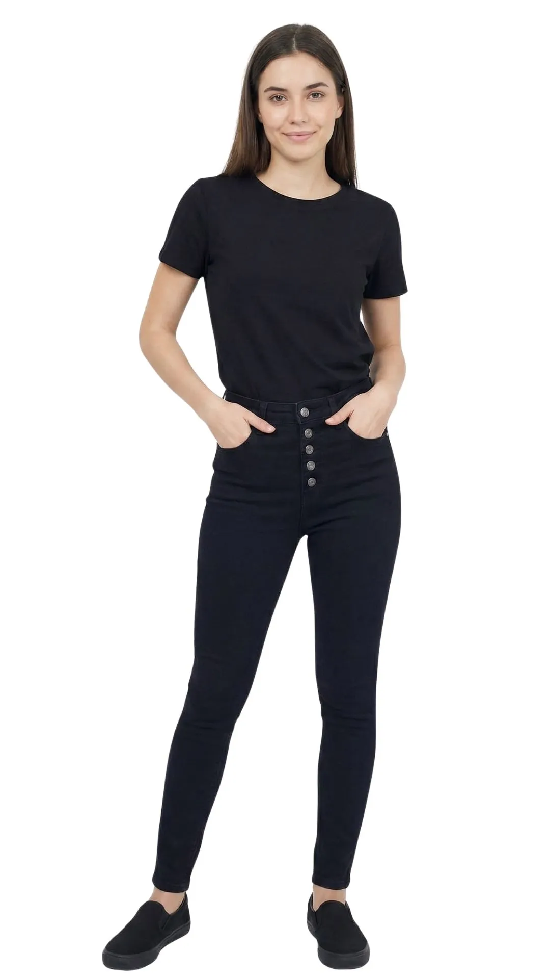 Button Fly: La bragueta con botones metálicos visibles es el protagonista del diseño, aportando un toque vintage y rockero que rompe con el básico negro liso.
