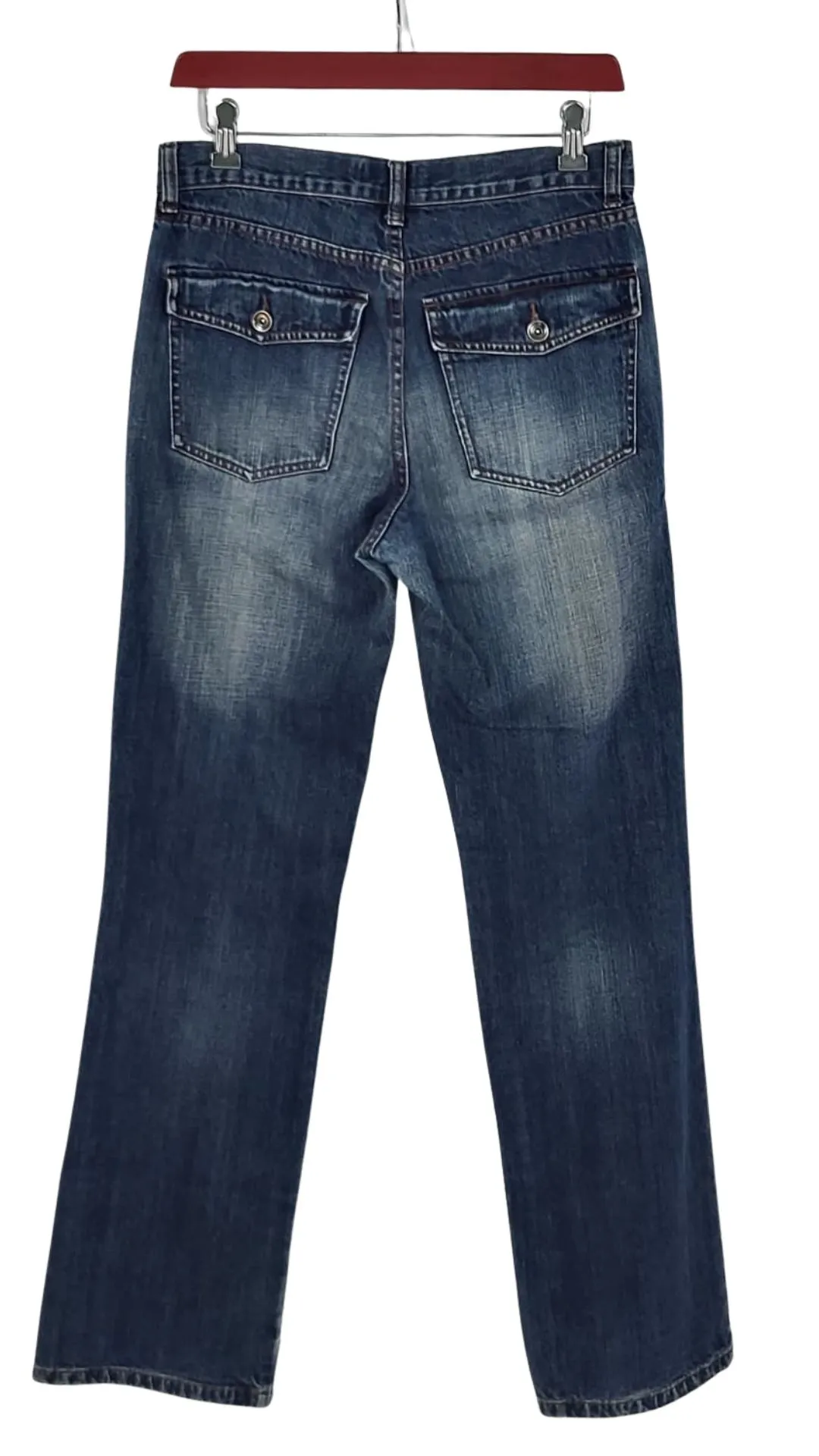 Lavado: Denim azul medio con un efecto de desgaste (whiskering) muy marcado en la zona superior que le da ese aspecto vintage auténtico.