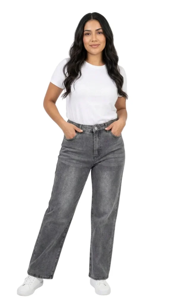 El Corte: Silueta recta que no se pega a la pierna, ofreciendo libertad de movimiento. El tiro es cómodo, asentándose bien en la cintura.