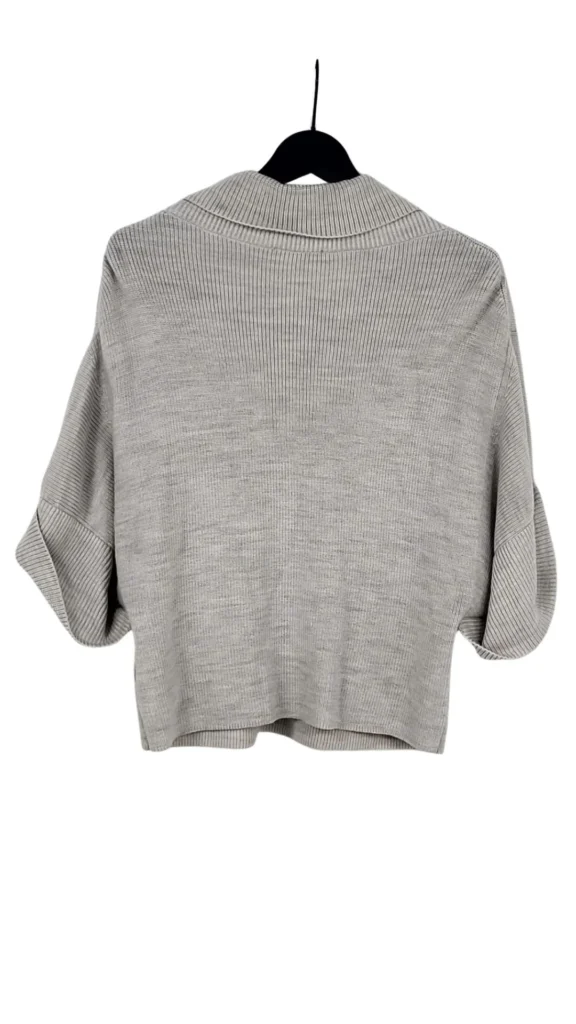 Silueta Kimono: Las mangas cortas y anchas con el detalle del dobladillo vuelto crean una silueta interesante y moderna, perfecta para el entretiempo o para llevar sobre camisas de manga larga ajustada en invierno.