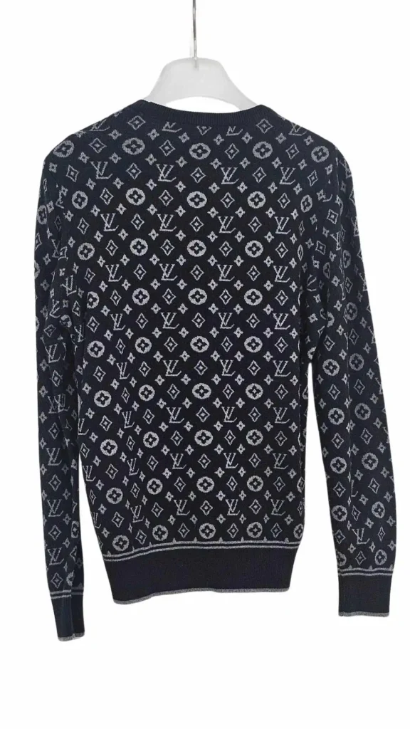 Diseño y Confección Exquisita La prenda destaca por su patrón All-over Monogram, donde las flores y las iniciales LV se entrelazan en un tejido de punto suave y cálido.