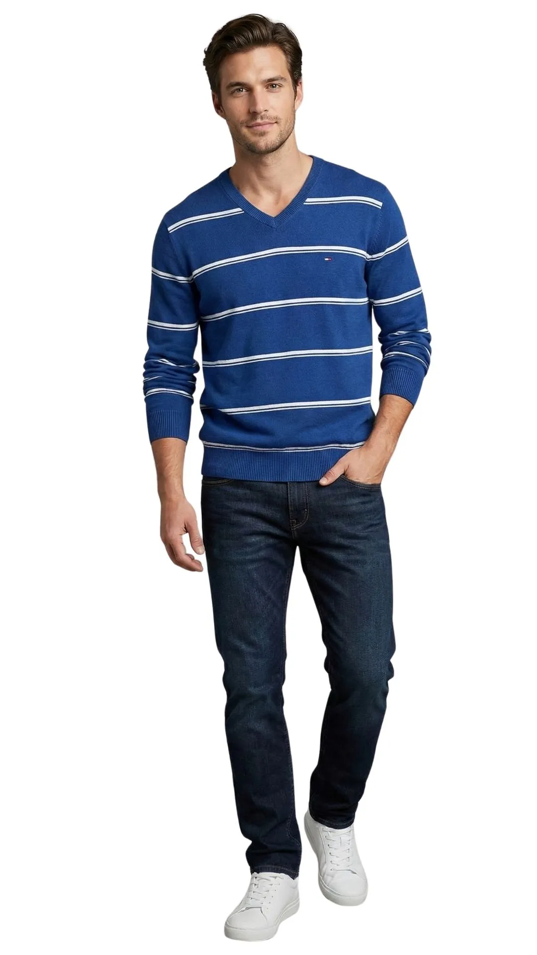 No hay nada que defina mejor el look casual americano que un jersey de rayas bien cortado. Esta prenda de Tommy Hilfiger es la combinación perfecta de relajación y estilo, diseñada para el hombre que busca ir arreglado sin esfuerzo.