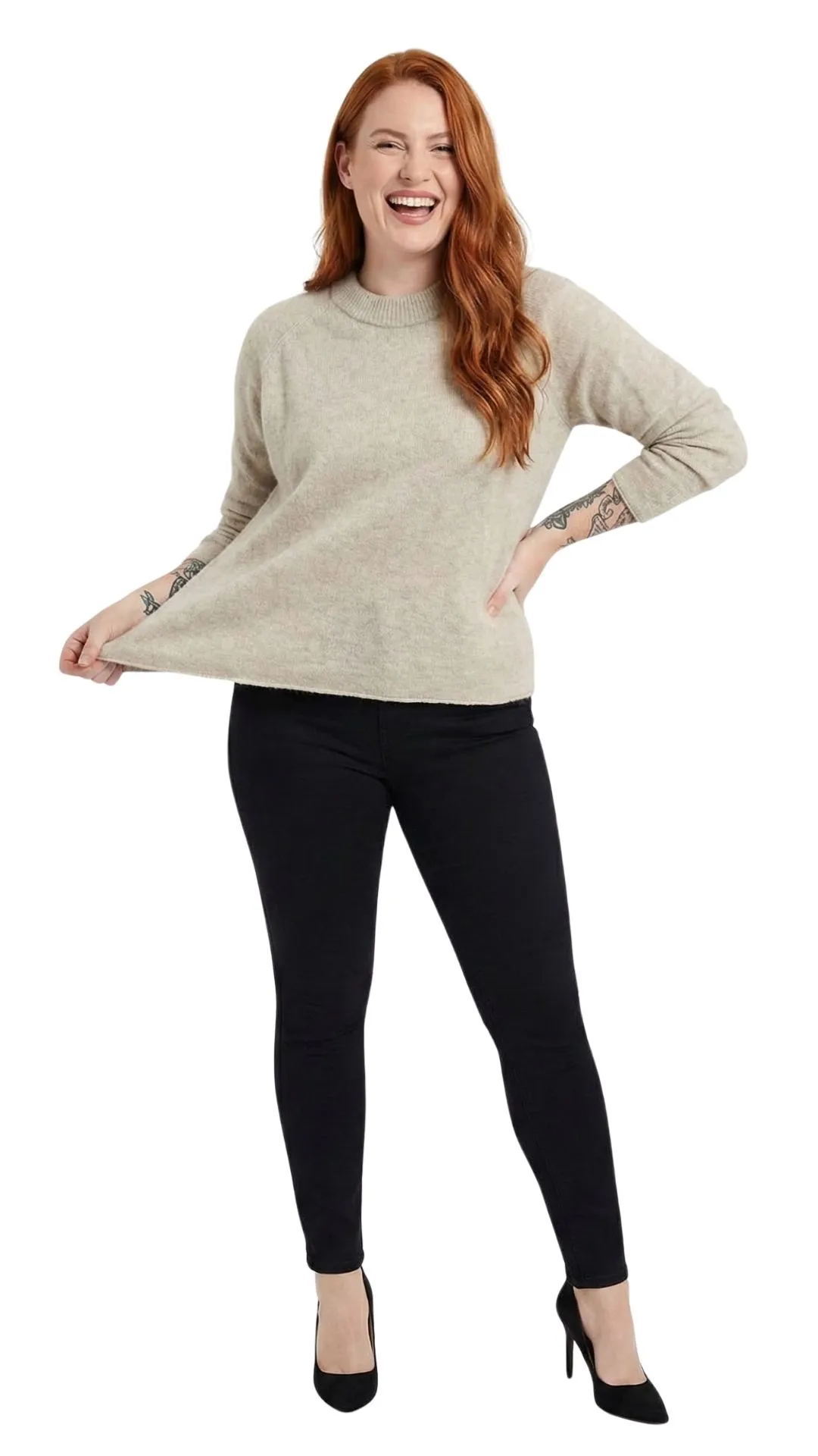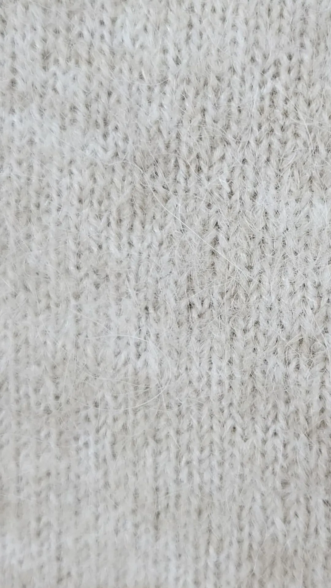 Efecto Soft: El tejido tiene un acabado cepillado con una textura esponjosa y ligera que resulta increíblemente suave contra la piel, similar al tacto de la angora.