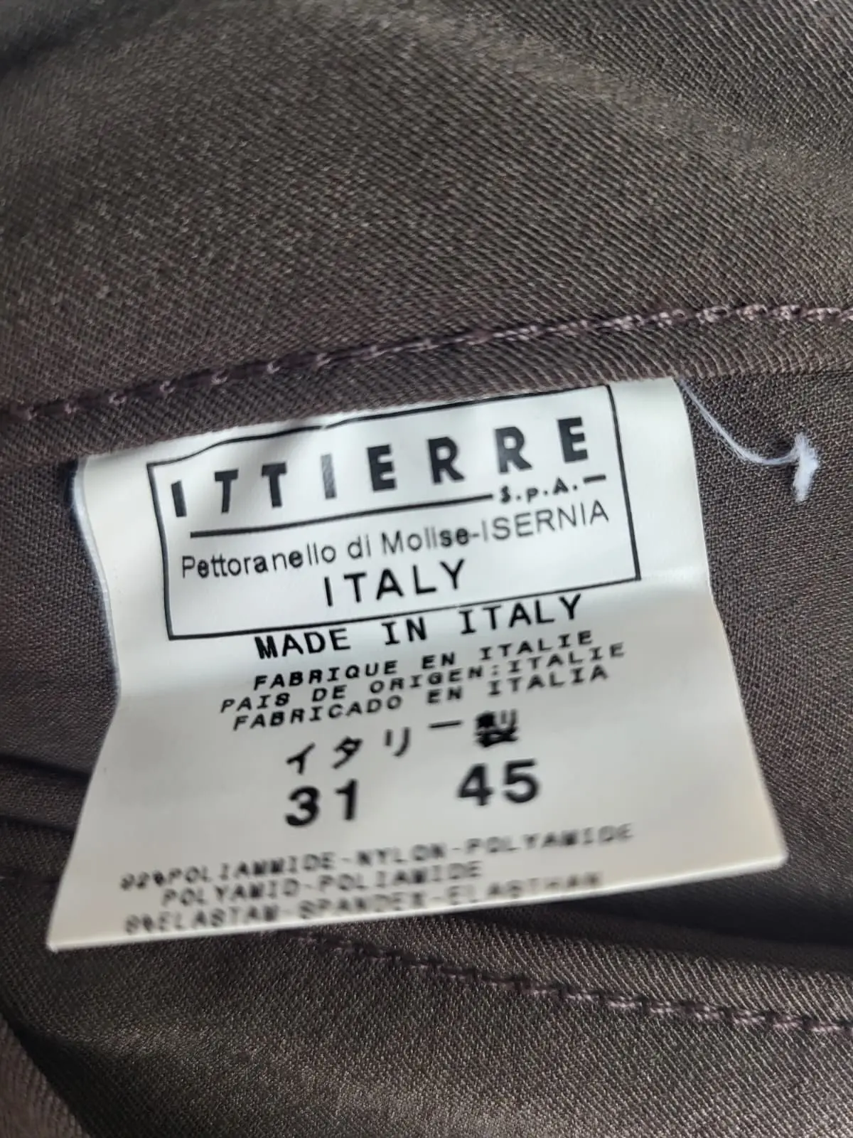Manufactura Ittierre: La etiqueta «Ittierre S.p.A – Made in Italy» garantiza su autenticidad y procedencia vintage (años 90/00s), muy valorada por los amantes de la moda.