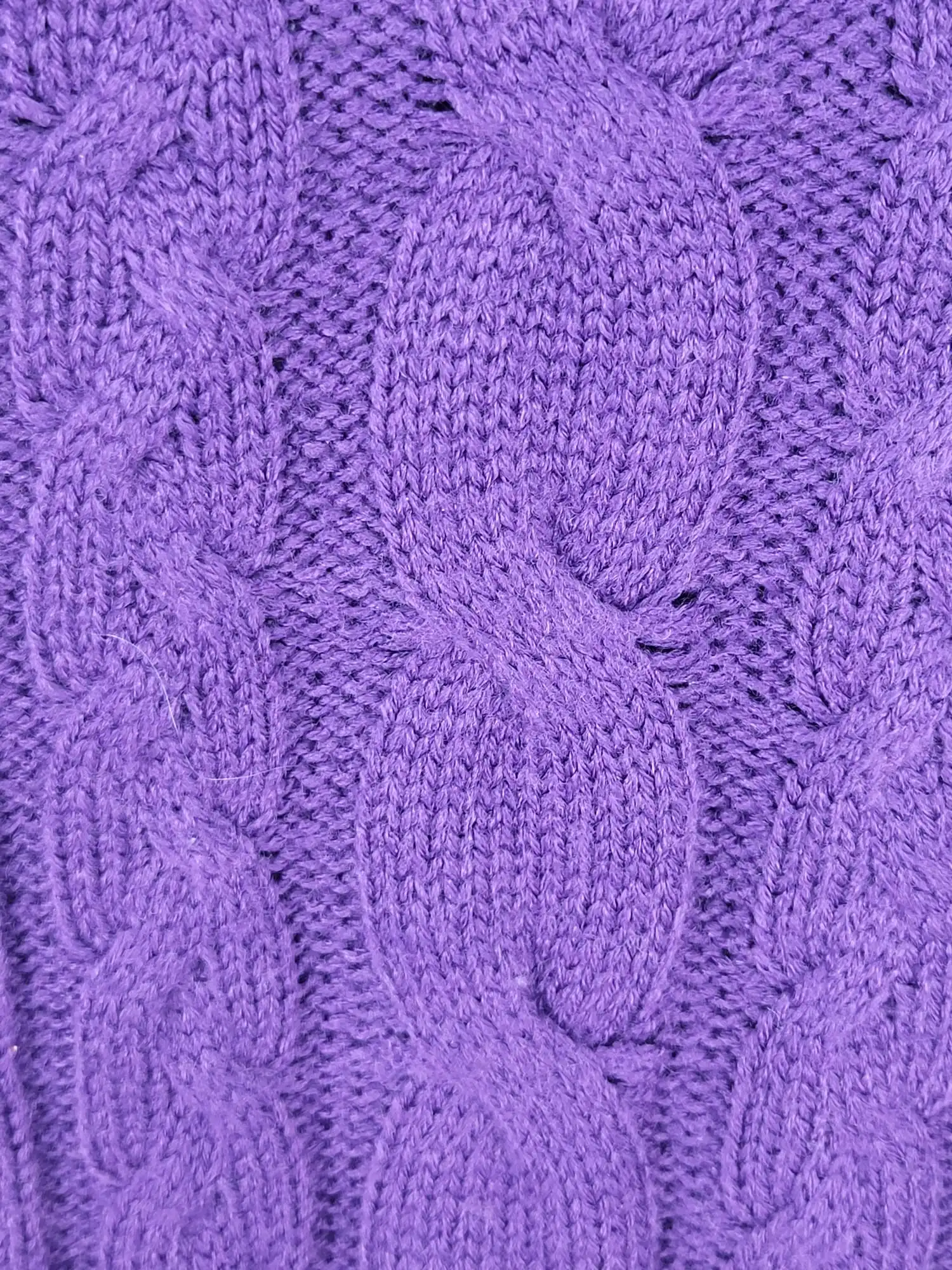 Textura Clásica: El tejido de punto presenta un elaborado patrón de ochos y trenzas que aporta volumen y un toque artesanal muy elegante.