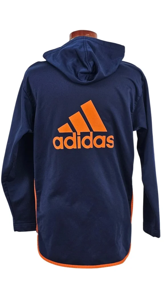 Detalles Visuales: El logotipo de Adidas aparece discreto en el pecho, pero el verdadero impacto está en la espalda, con un logo gigante que grita estilo urbano.