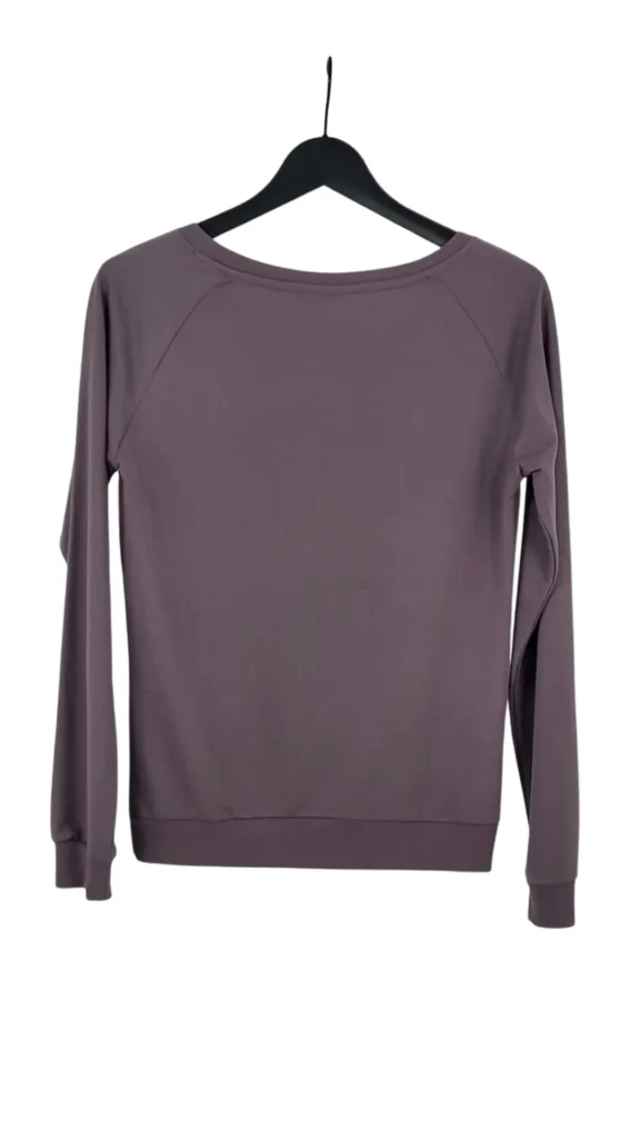 Sudadera deportiva de la marca Only Play. Color malva oscuro (dusty purple) con estampado frontal «DREAM» y detalle plateado metalizado. Mangas ranglán cómodas y tejido suave. Talla S. ¡Estilo deportivo con un mensaje motivador!