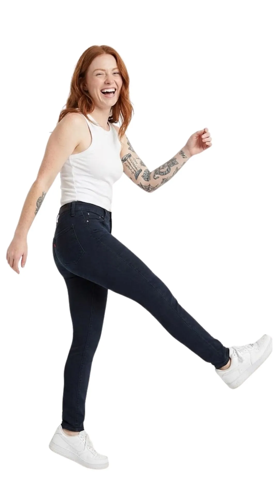 El Corte Mile High: Su cintura ultra alta se asienta por encima de las caderas, recogiendo y estilizando la zona abdominal, mientras que la pierna super skinny se ajusta como una segunda piel.