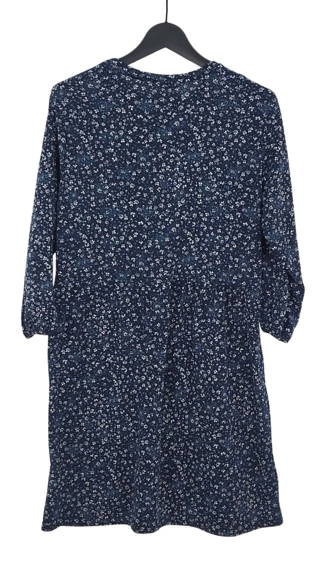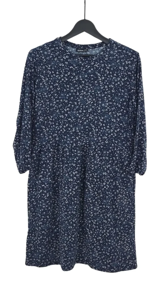 Estampado Atemporal: El fondo azul con flores blancas dispersas es un patrón versátil que disimula y favorece.