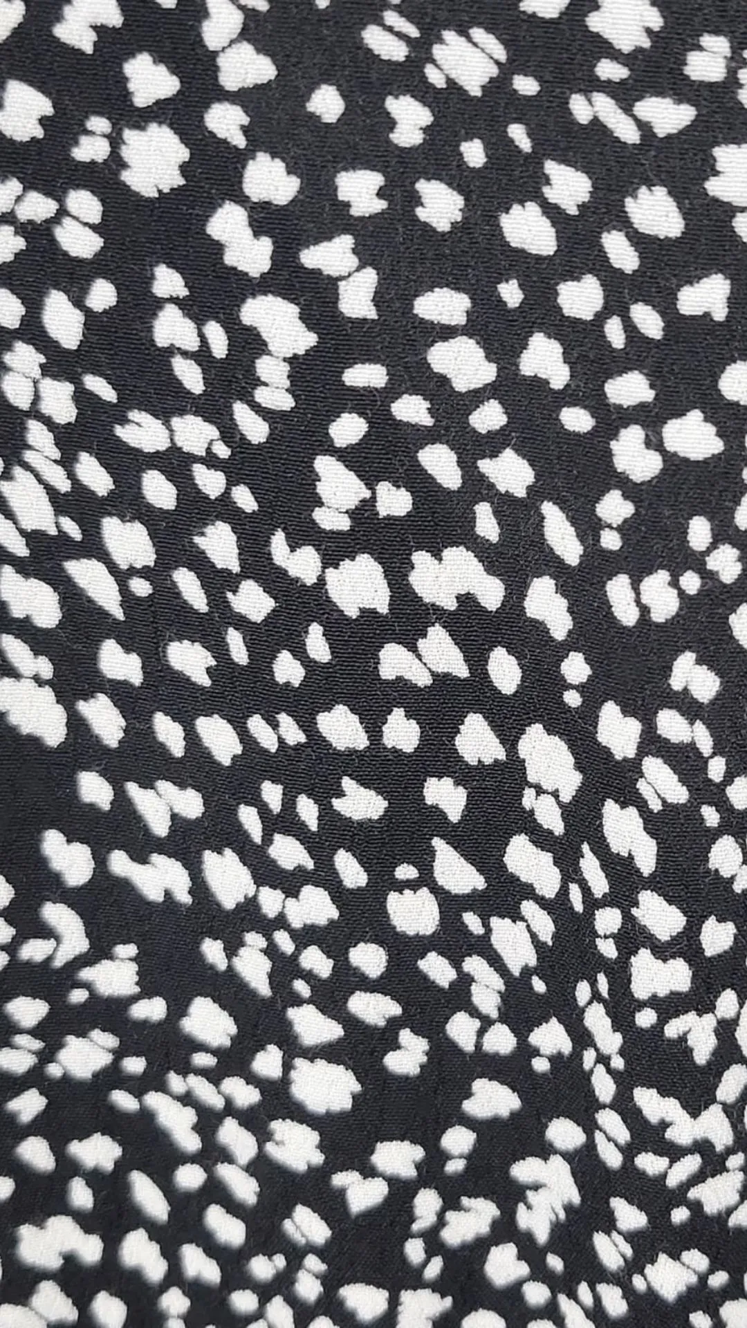 Estampado Versátil: El patrón de manchas blancas sobre negro aporta textura visual sin ser estridente. Es una alternativa moderna a los lunares clásicos o al animal print.