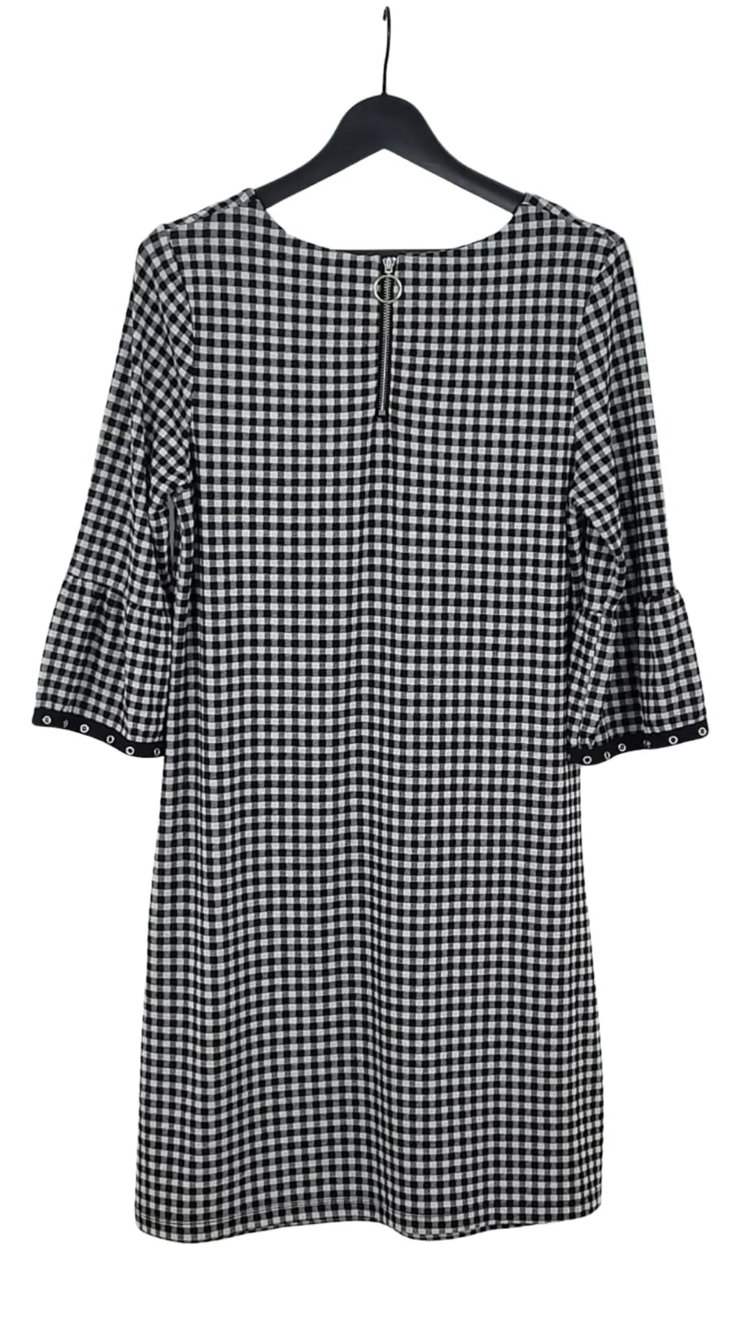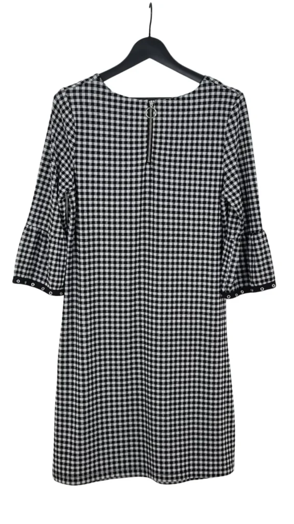 Dale un aire fresco y sofisticado a tu armario con este vestido de Oui. El eterno estampado de cuadros vichy se actualiza con un tejido rico en texturas y unos acabados en las mangas que marcan la diferencia.