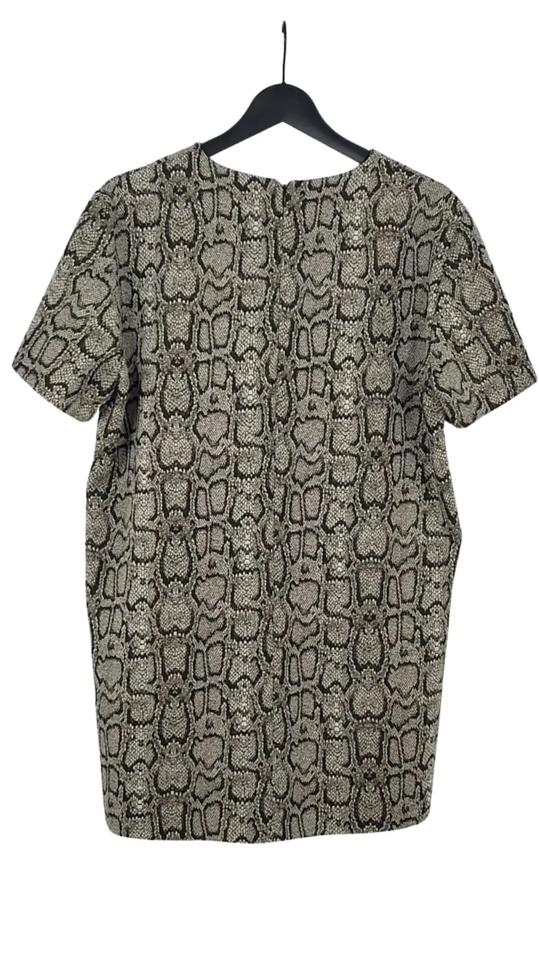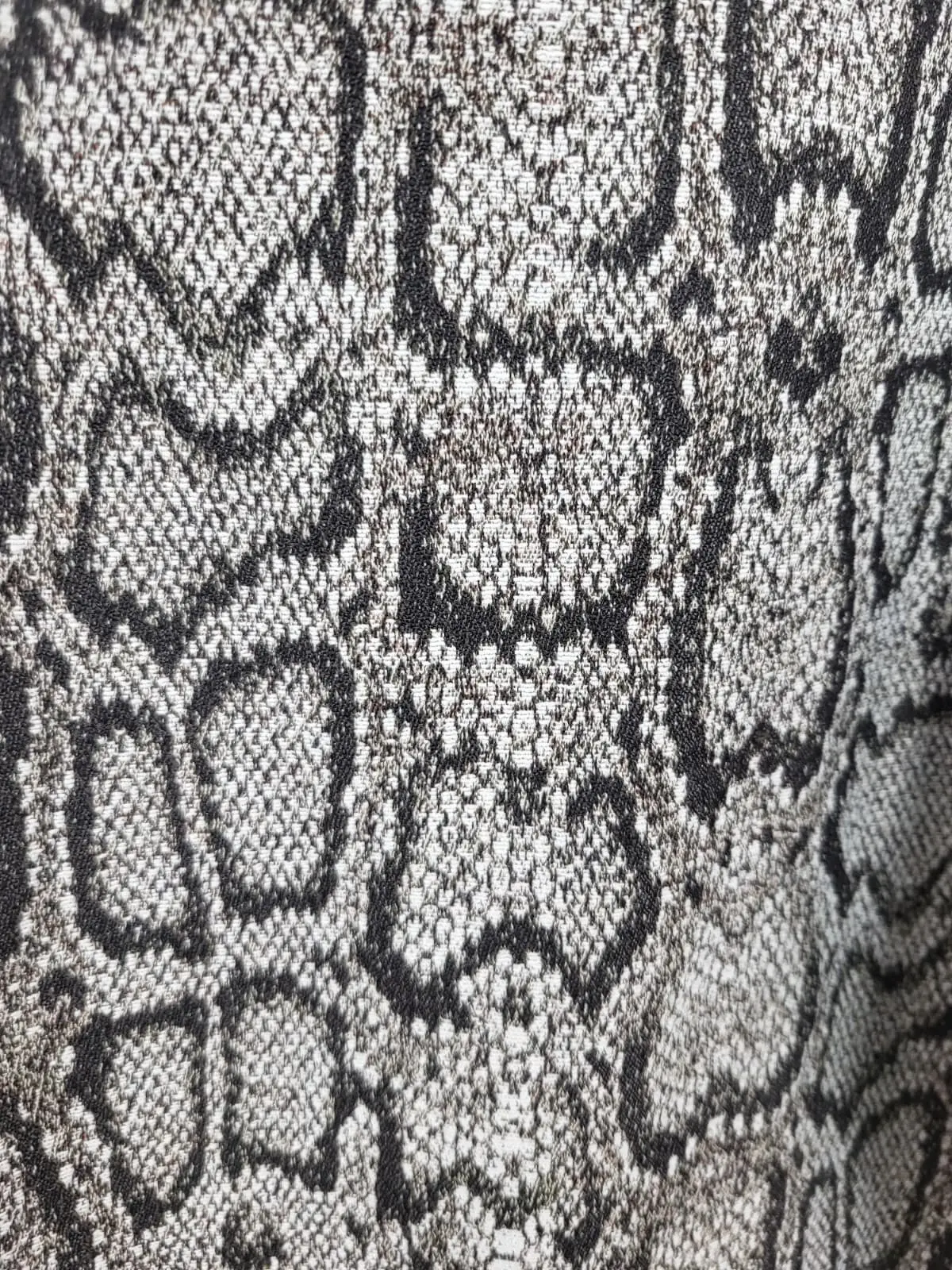 Añade carácter a tu armario con este vestido de Zara Woman. Su estampado de serpiente, lejos de ser estridente, se presenta en una elegante gama de grises con una textura rica que eleva la prenda.